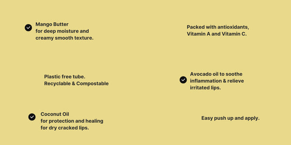 organic mango butter, organic candillila wax, organic coconut oil, organic avocado oil, organic sunflower oil, natural flavor oil*, organic tapioca starch, tocopherols.